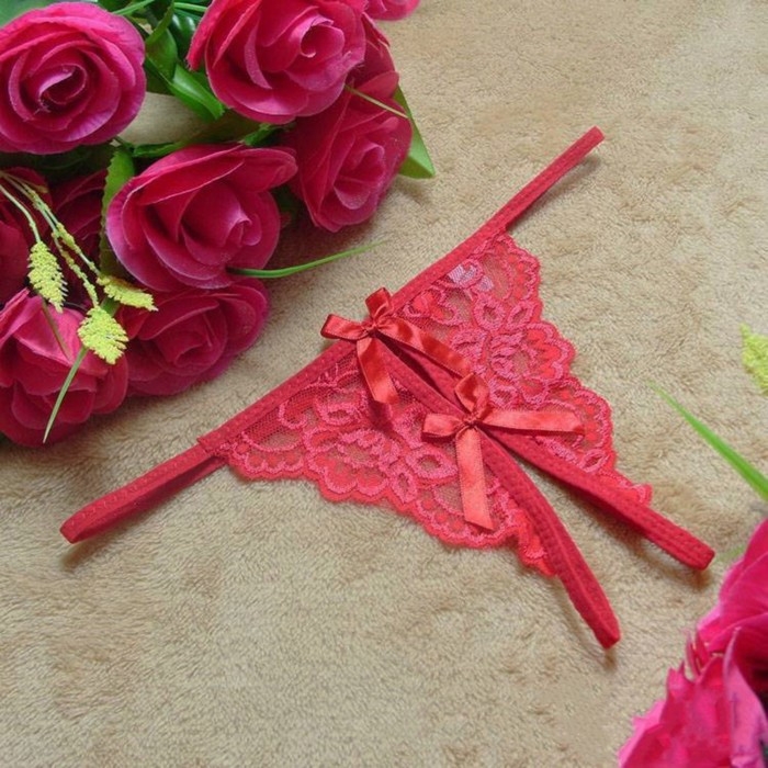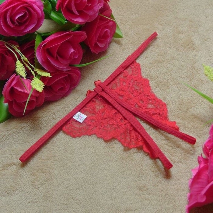 Эротическое белье Оки-Чпоки, трусики, стринги с доступом, кружево, размер OS, красный