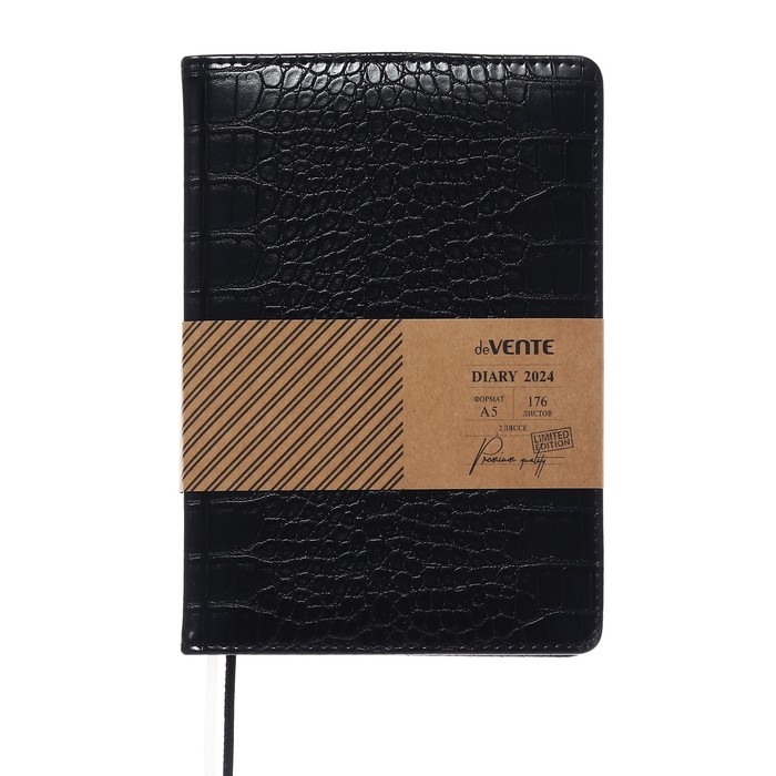 Ежедневник датированный 2024 A5 176 листов, deVENTE.Belcanto, твёрдая обложка из искусственной кожи с поролоном, ляссе, кремовый блок 70 г/м2, чёрный