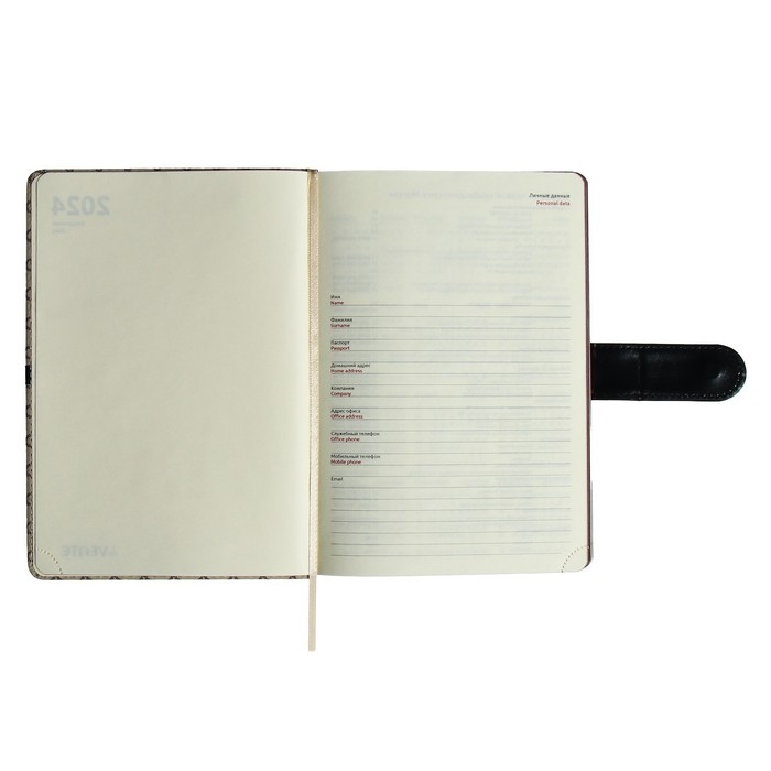 Ежедневник датированный 2024 A5 176 листов, deVENTE.Chelsea, твёрдая обложка из искусственной кожи, коричневый срез, магнитный хлястик, ляссе, кремовый блок 70 г/м2, бежевый