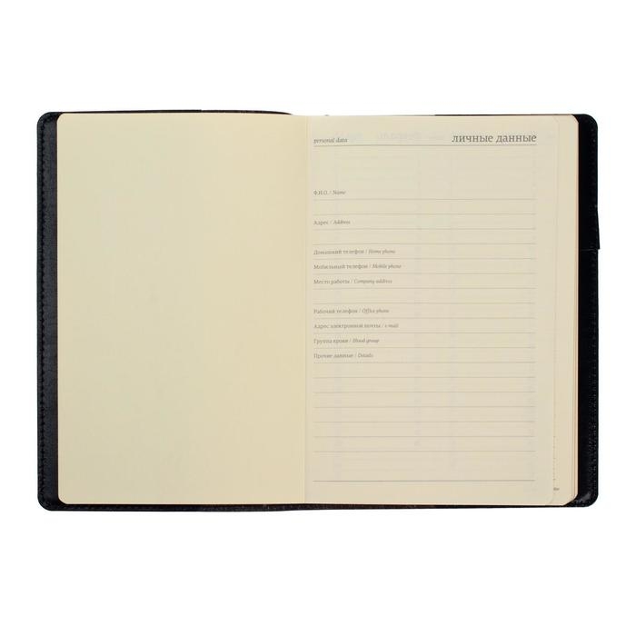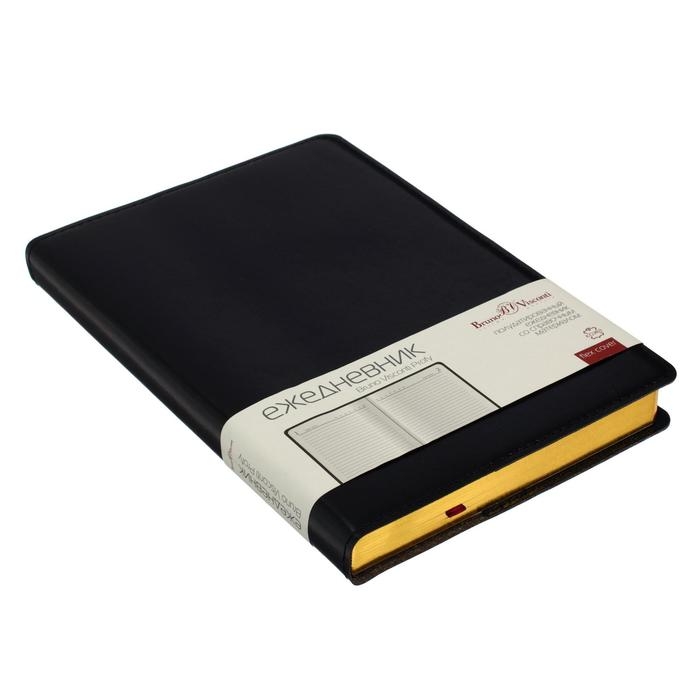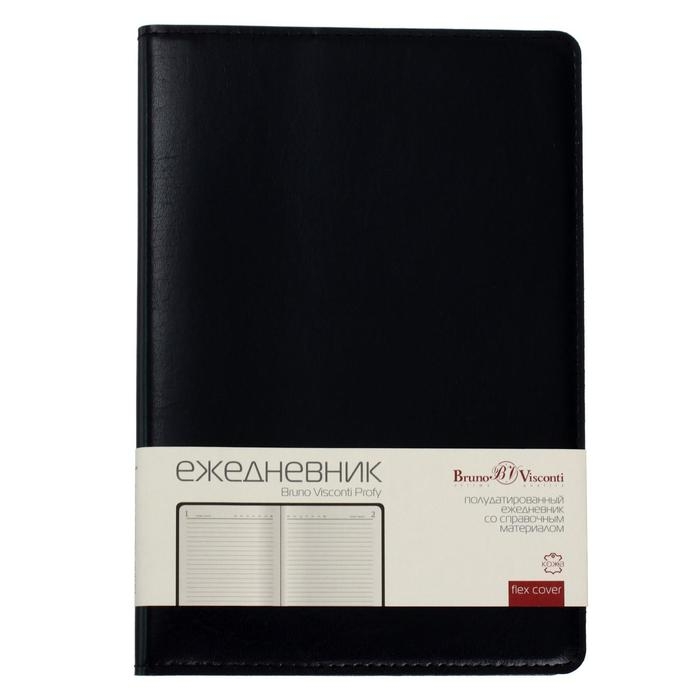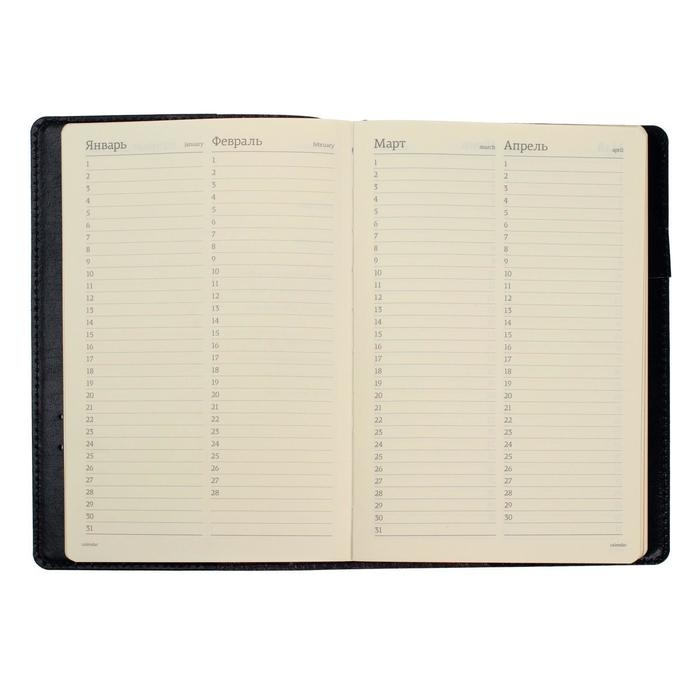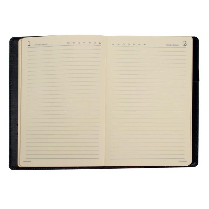 Ежедневник полудатированный А5, 208 листов Profy, рециклированная кожа, сменный блок, золотой срез, чёрный