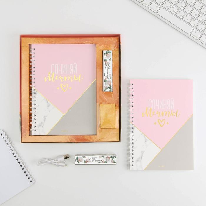 В набор входит ежедневник на спирали формата А5 (40 листов) и зарядное устройство 2000 mAh. В комплекте к внешнему аккумулятору идёт отдельный шнур для разъема USB и micro USB. Подходит для пополнения заряда аккумулятора мобильных телефонов, планшетов, MP3-плееров, цифровых фотокамер и других устройств.