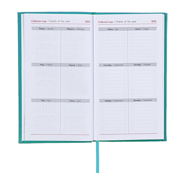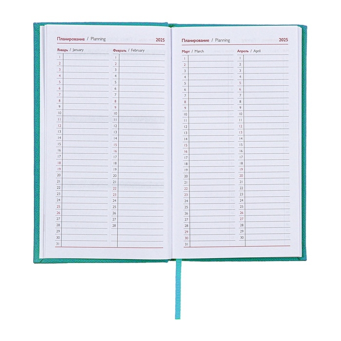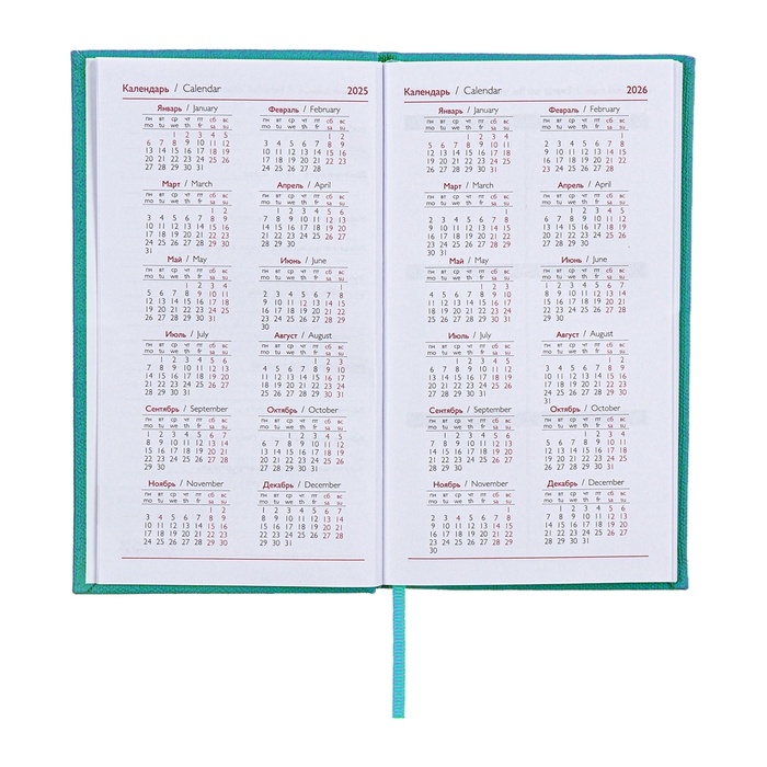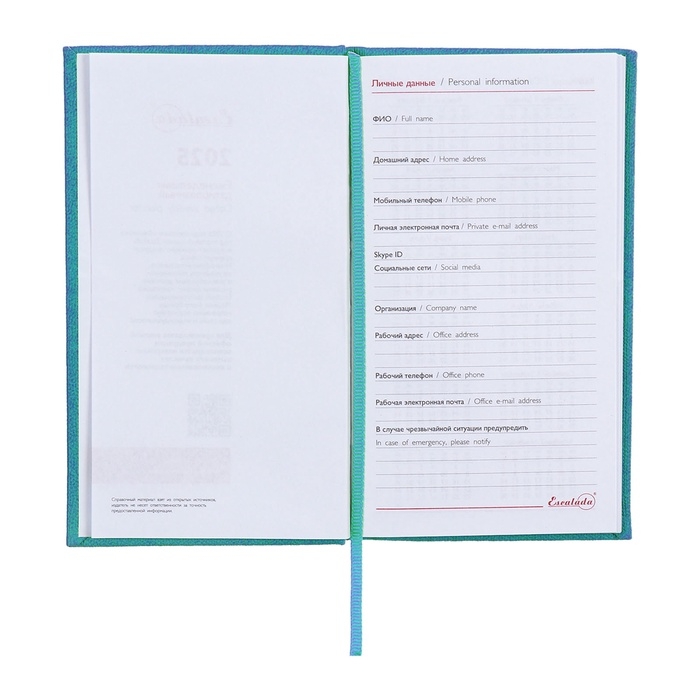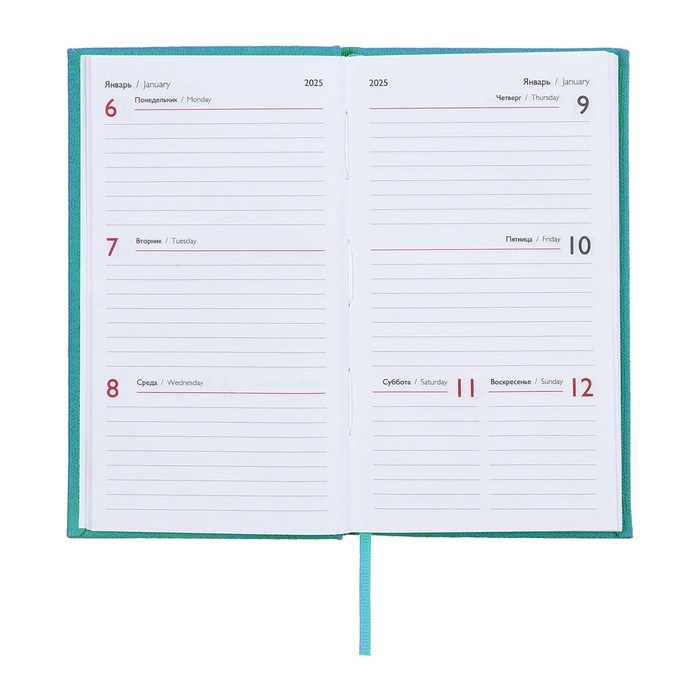 Еженедельник датированный 2025 года, 85х145 мм, 64 листа ESCALADA, твердая обложка из искусственной кожи, блинтовое тиснение, блок 70 г/м², бирюзовый
