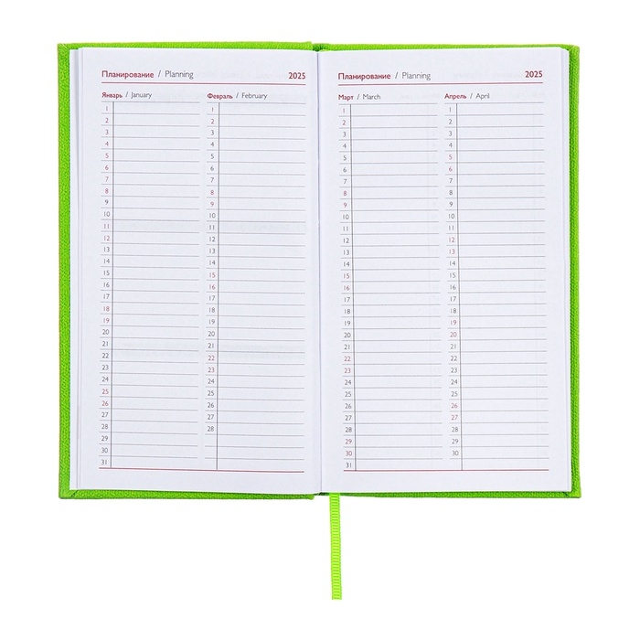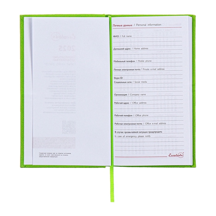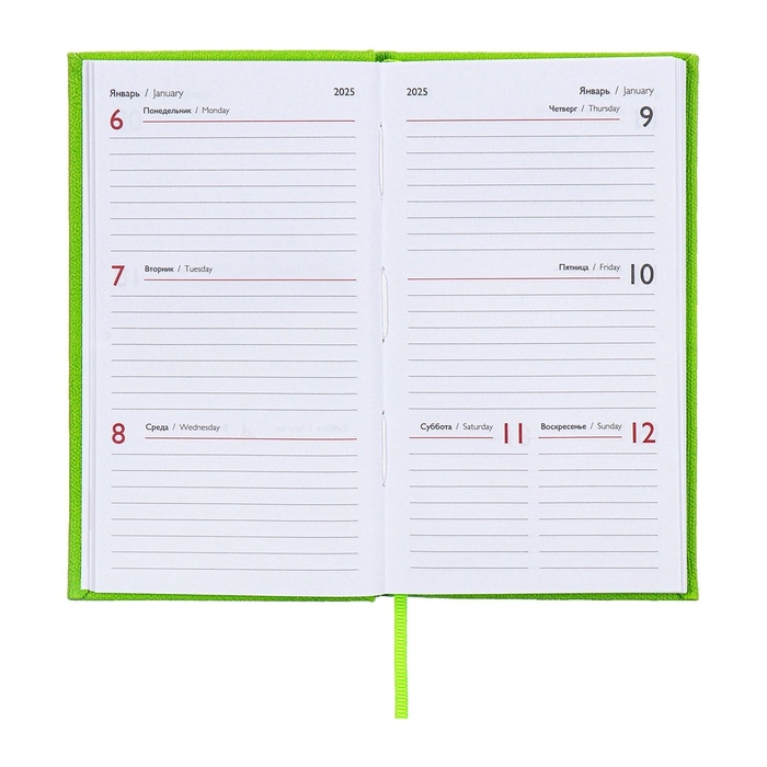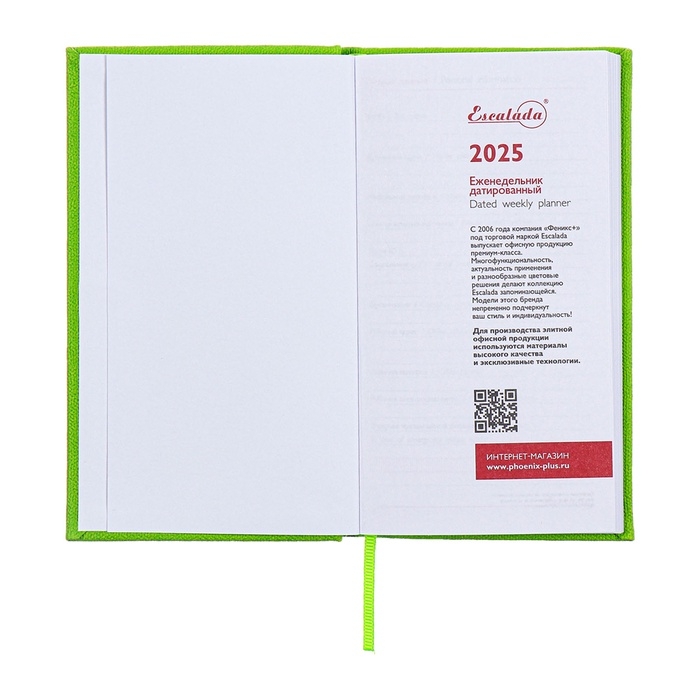 Еженедельник датированный 2025 года, 85х145 мм, 64 листа ESCALADA, твердая обложка из искусственной кожи, блинтовое тиснение, блок 70 г/м², зелёный