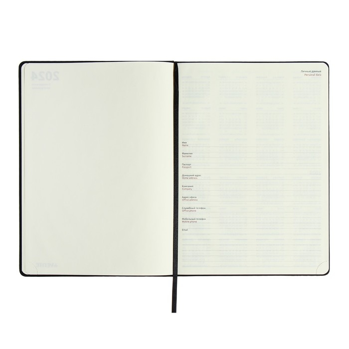 Еженедельник датированный 2025 года, A4, 64 листа, deVENTE.Emblem, твёрдая обложка из искусственной кожи с поролоном, ляссе, кремовый блок 70 г/м2, чёрный