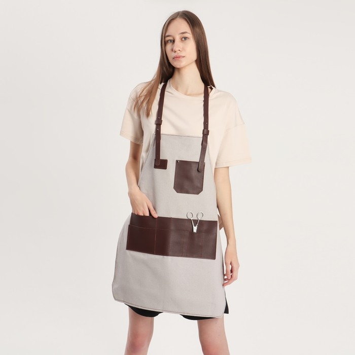 Фартук защищает одежду мастера от загрязнений. Материал легко моется и долго сохраняет свои свойства. Вы можете закрепить на нём парикмахерские инструменты: это ускорит работу и подчеркнёт ваш профессионализм. Не использовать высокие температуры для разглаживания фартука. Рекомендуется использовать метод отпаривания.