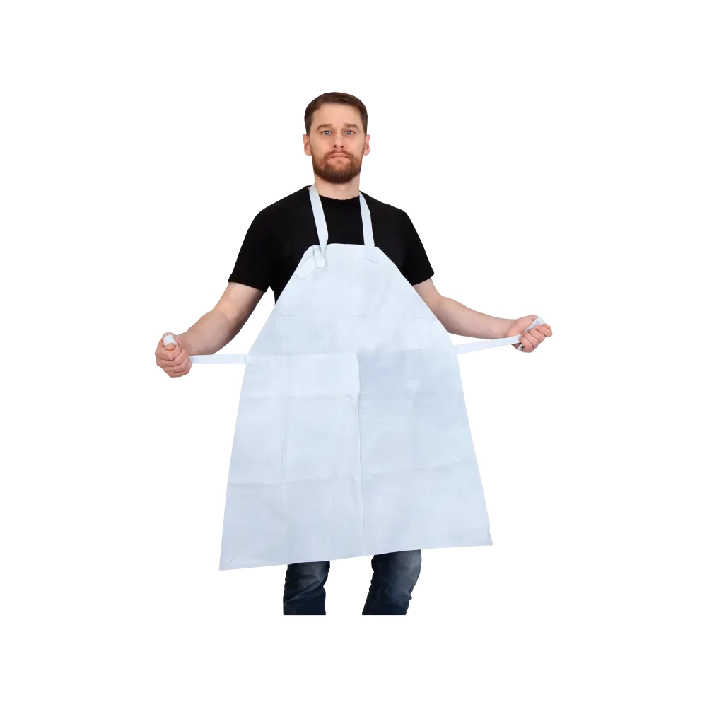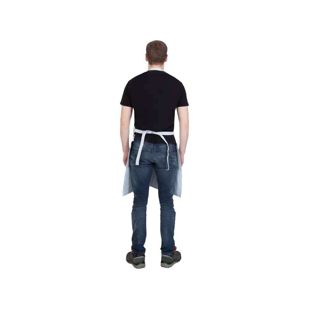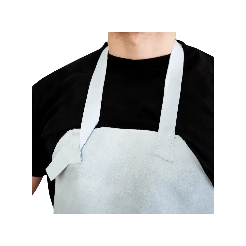Фартук спилковый обеспечит защитой от повышенной температуры, искр и брызг расплавленного металла. Изделие представляет собой цельнокроеный нагрудник с замкнутой шейной бретелью. Верхние боковые края снабжены тесьмой для завязывания.