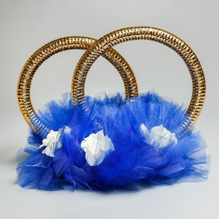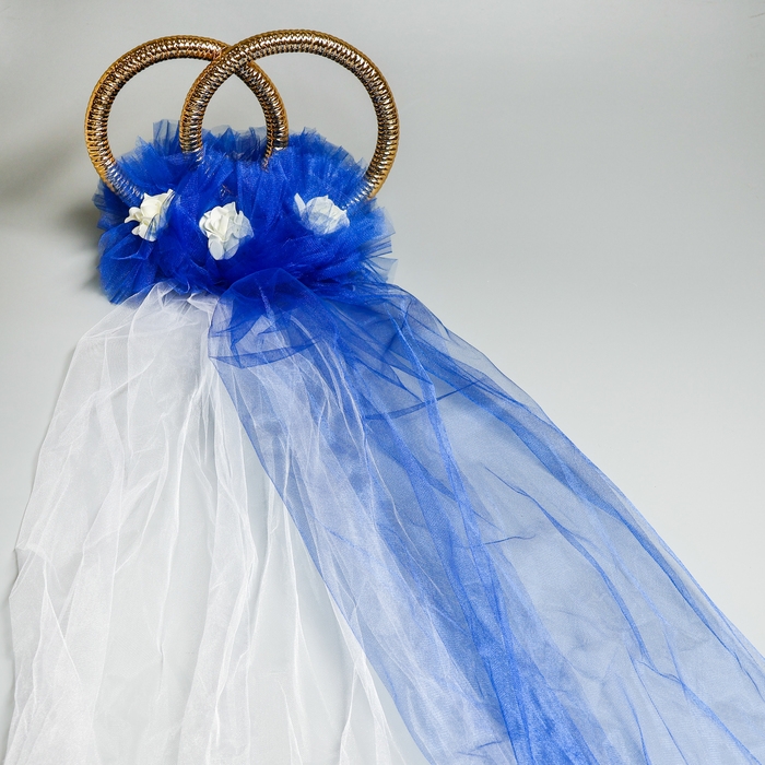Фата на капот с кольцами из фатина на угол, синий