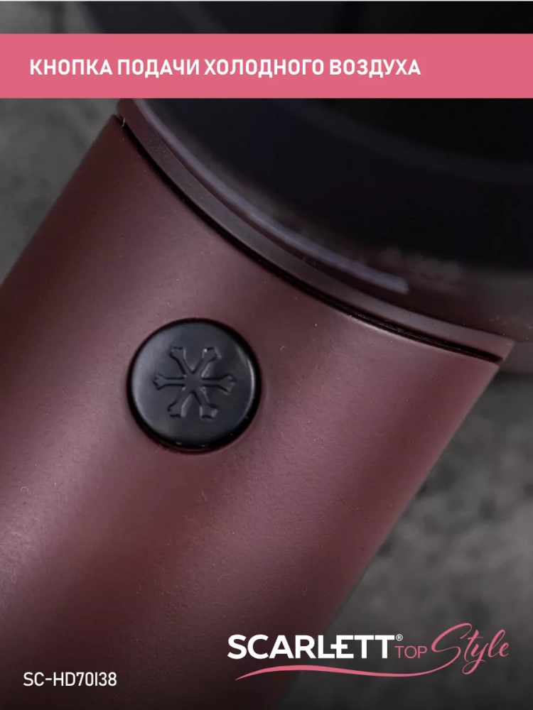 Стильное цветовое решение и мощный поток воздуха – все это новый фен линейки Scarlett Top Style. SC-HD70I38. Мотор 2000 Вт обеспечит быструю сушку, а насадка-концентратор подходит для профессиональной и точной укладки. Фен оснащен сменными температурными режимами и кнопкой подачи холодного воздуха для фиксации укладки. Мы позаботились о том, чтобы ваши волосы приобрели максимальный блеск и сияние, без пересушивания, благодаря технологии Advanced Tourmaline.
