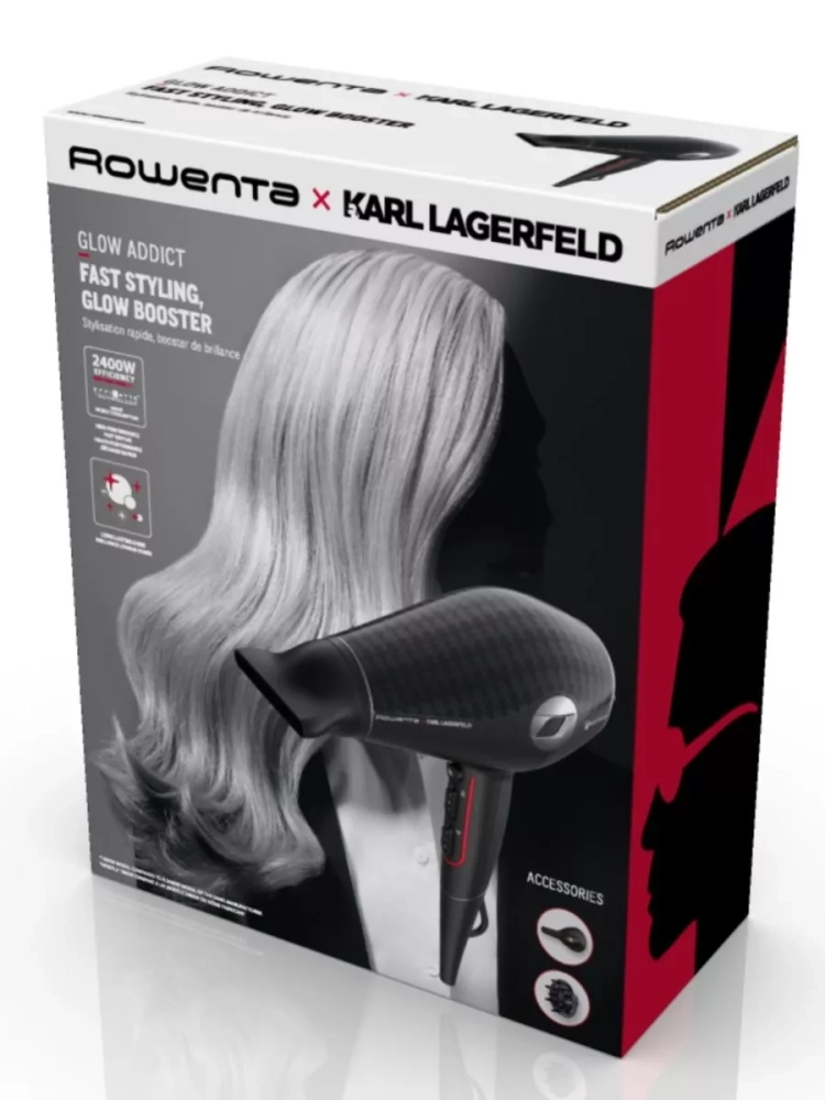 Фен Rowenta x Karl Lagerfeld Glow Addict сочетает в себе мощность, продуманный дизайн и стильный внешний вид, гарантируя безупречную прическу каждый день!