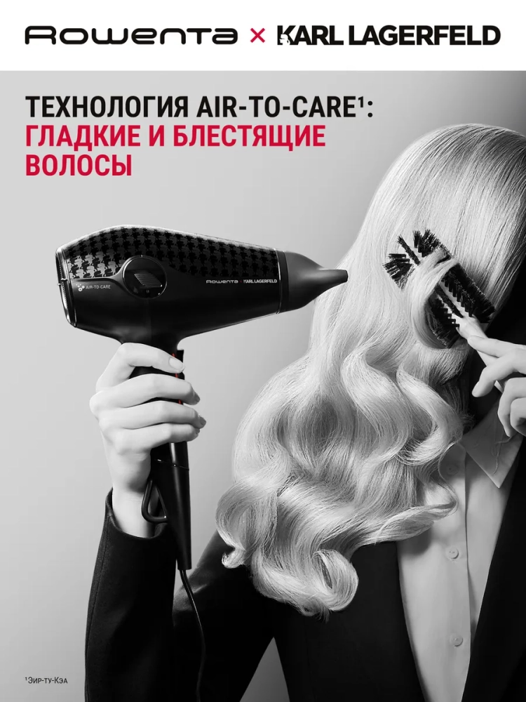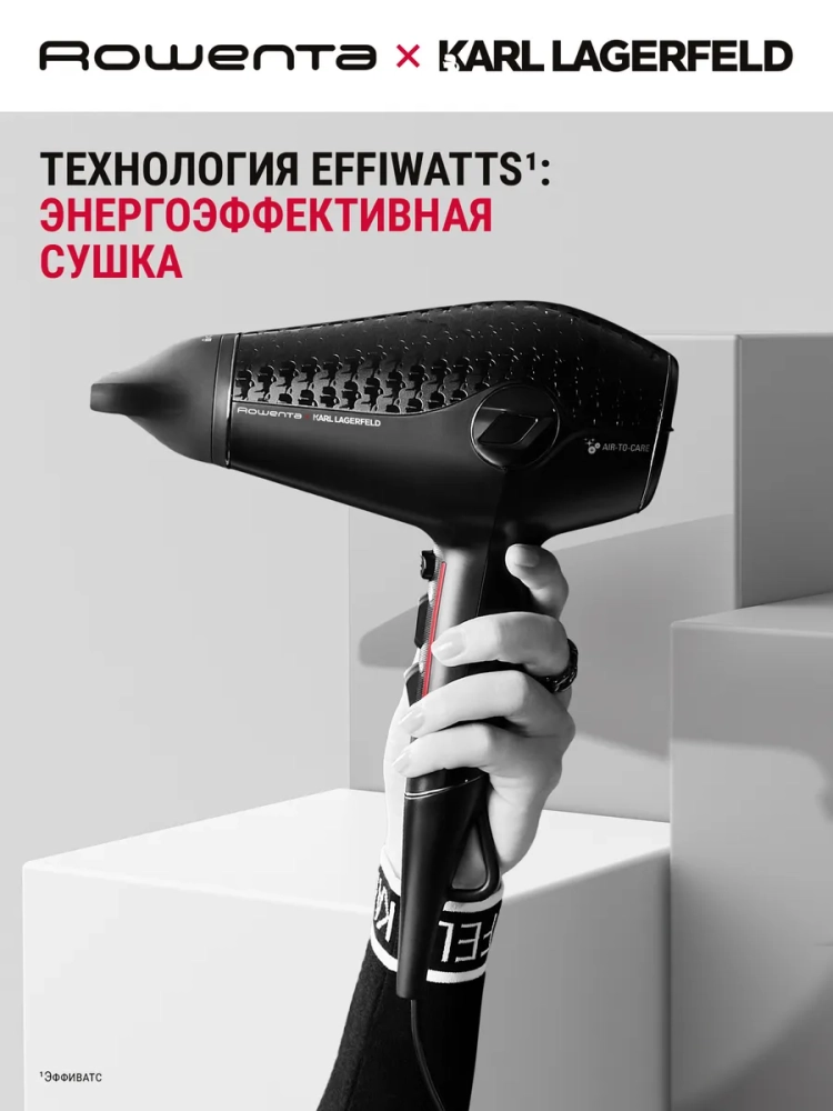 Фен для волос Rowenta x Karl Lagerfeld Glow Addict CV613LF0 — это мощный и стильный инструмент, созданный для быстрой и эффективной укладки.