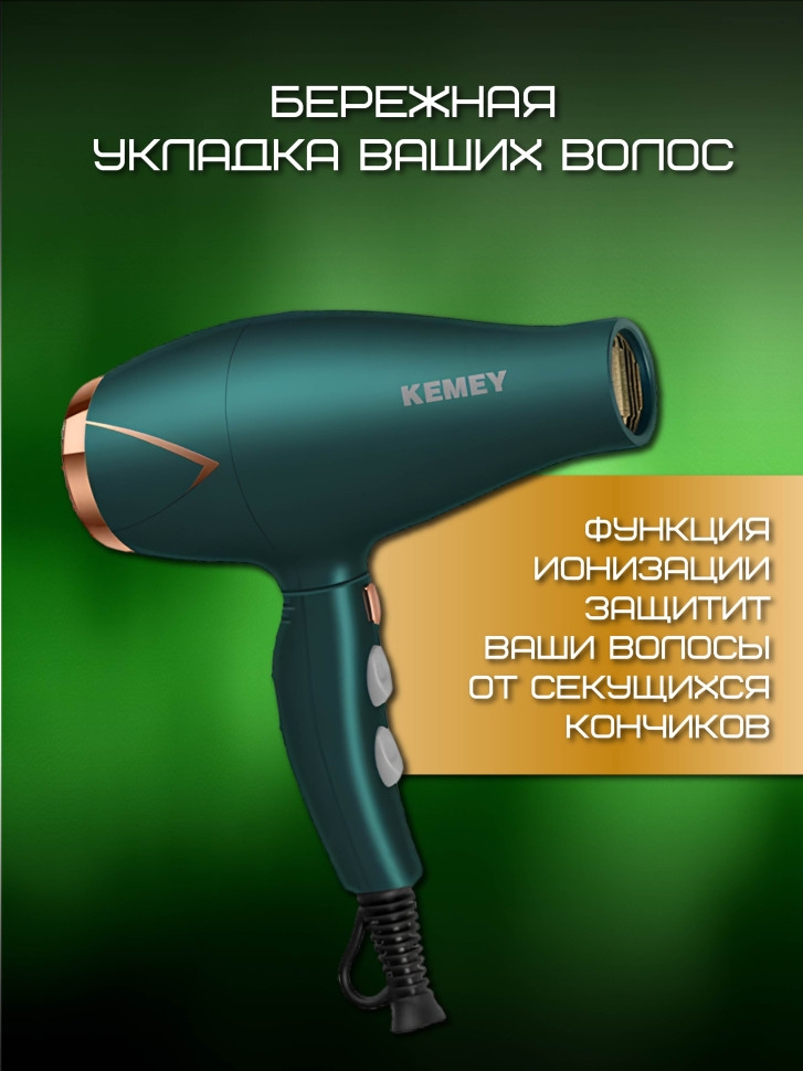Фен для волос Kemey km-8222 цвет в ассортименте