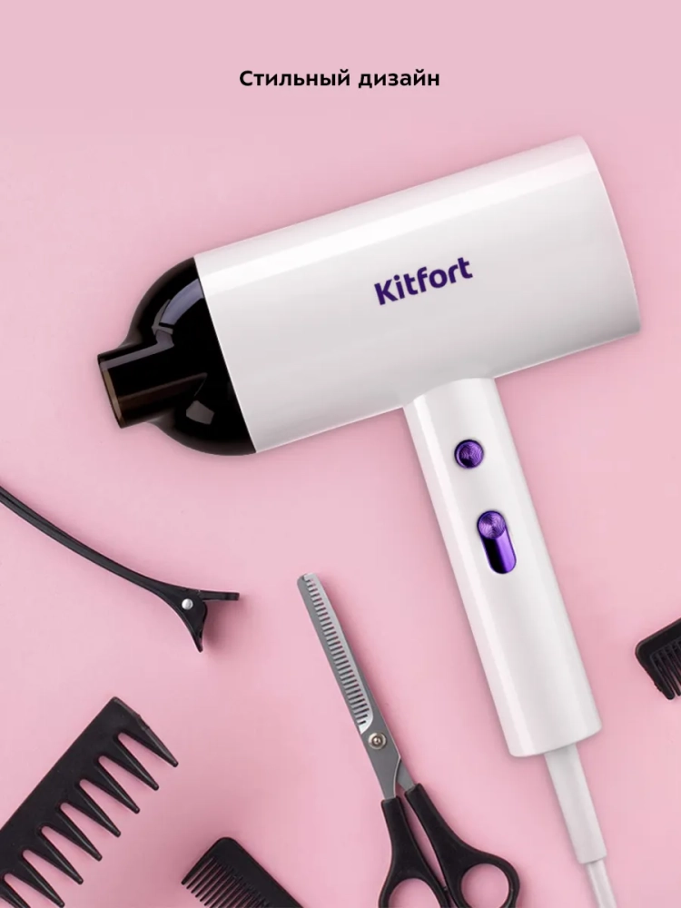 С помощью фена Kitfort КТ-3201 вы сможете быстро высушить волосы и сделать красивую укладку. Фен выдает направленный поток воздуха, поэтому волосы с ним сушить просто и удобно.