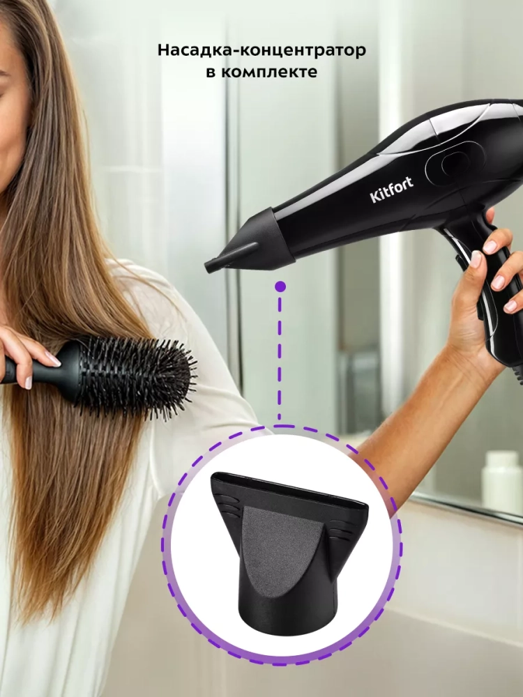 С помощью фена Kitfort КТ-3207 вы сможете быстро высушить волосы и сделать красивую укладку. Фен выдает направленный поток воздуха, поэтому волосы с ним сушить просто и удобно. КТ-3207 позволяет регулировать температуру и скорость потока воздуха. Вы можете установить холодный, теплый или горячий воздух, а также выбрать нужную скорость потока воздуха. Корпус фена выполнен из пластика, эргономичная ручка фена удобно лежит в руке. Шнур оснащен петлей, что позволяет удобно хранить фен на крючке. Насадка в комплекте направляет поток воздуха именно на прядь волос, позволяя ей высохнуть намного быстрее, это значительно ускоряет время укладки.