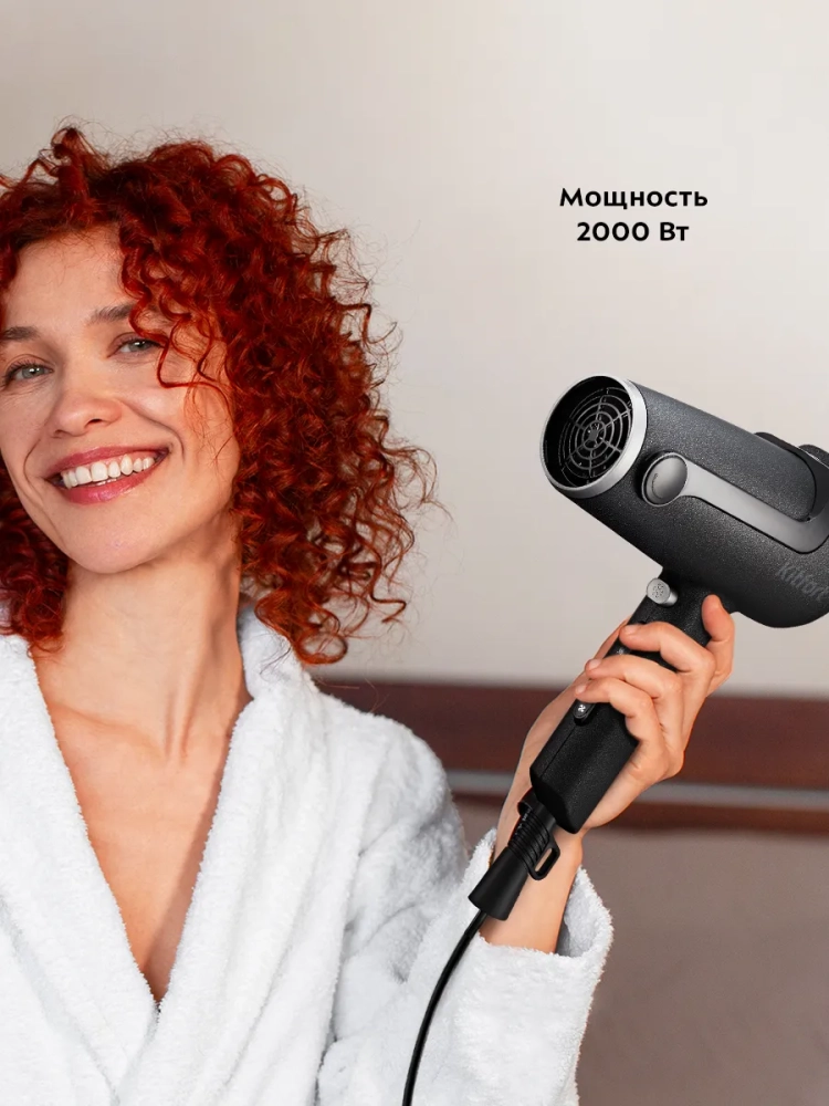 С помощью фена Kitfort КТ-3231 вы сможете быстро высушить волосы и сделать красивую укладку. Фен выдает направленный поток воздуха, поэтому волосы с ним сушить просто и удобно. КТ-3231 позволяет регулировать температуру и скорость потока воздуха. Вы можете установить холодный, теплый или горячий воздух, а также выбрать нужную скорость потока воздуха. Отдельная кнопка «Холодный воздух» позволяет в любой момент включить холодный воздух из любого температурного режима. Корпус фена выполнен из пластика, а эргономичная ручка фена удобно лежит в руке. Насадка-концентратор в комплекте направляет поток воздуха именно на прядь волос, позволяя ей высохнуть намного быстрее, что облегчает процесс укладки. Турбонасадка имеет внутреннюю подвижную часть, которая вращается за счет потока воздуха, тем самым создается пульсирующий поток воздуха. В результате пульсирующих потоков волосы сохнут быстрее. Выдвижная подставка позволяет устанавливать фен на поверхности. В таком положении вы можете хранить фен. На подставке вы можете включать фен и одновременно сушить волосы, установив его на достаточной высоте. При этом фен не нужно держать в руках, вы можете занять их расческой и средствами для укладки. Дополнительная петля на защите от перегиба позволяет хранить фен в подвешенном состоянии, на крючке.