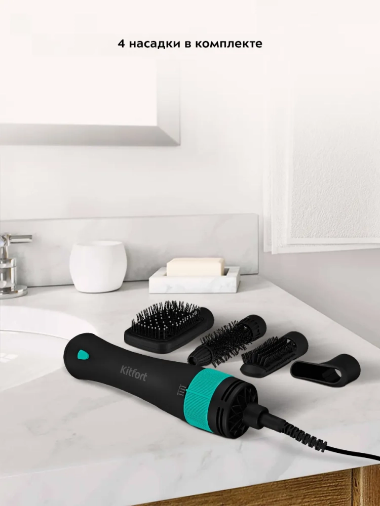 Фен-щетка «4 в 1» Kitfort КТ-3236 поможет быстро высушить ваши волосы и сделать укладку. 4 насадки в комплекте позволяют создавать различные укладки, используя одно устройство. Для удобства использования фен-щетка КТ-3236 имеет две скорости работы и 2 температурных режима. У переключателя скорости и температуры всего 4 положения — фен-щетка выключен, высокая скорость и теплый воздух, низкая скорость и горячий воздух, высокая скорость и горячий воздух. Корпус фена-щетки выполнен из пластика и удобно лежит в руке. Шнур оснащен защитой от перегиба, что увеличивает срок службы.
