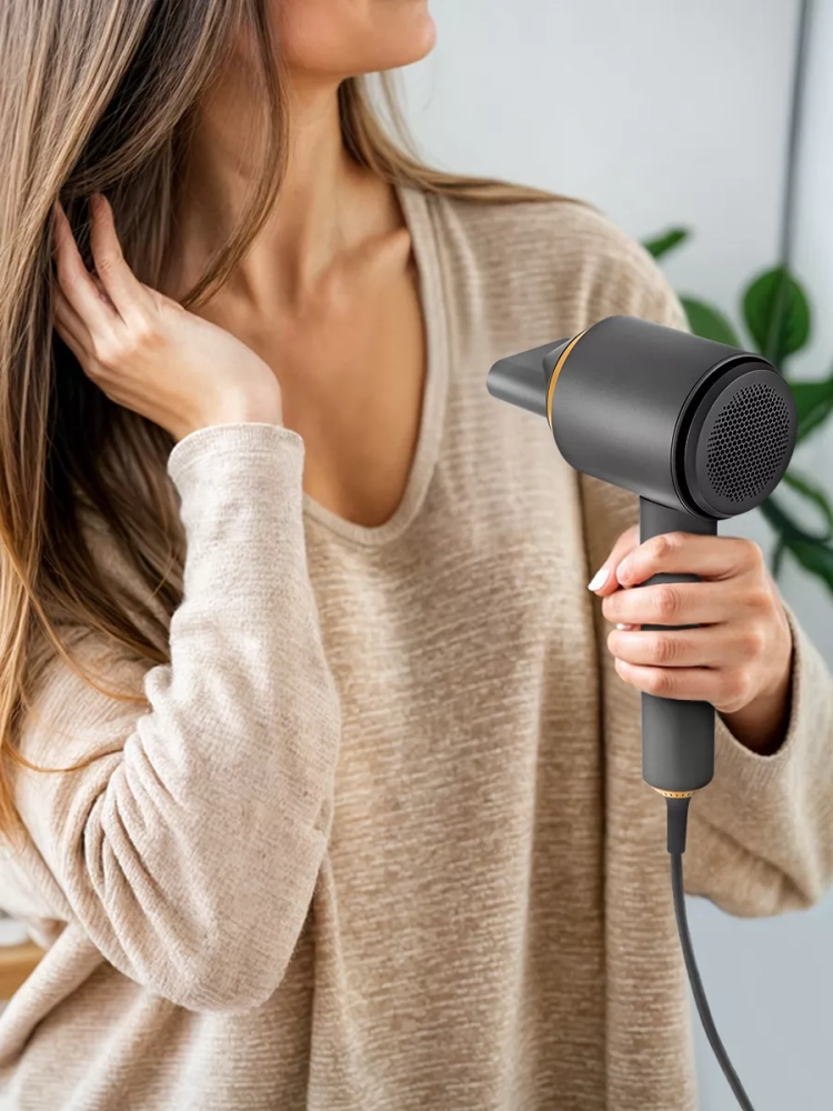 Корпус фена выполнен из пластика, эргономичная ручка фена удобно лежит в руке. Насадка-концентратор направляет поток воздуха именно на прядь волос, позволяя ей высохнуть намного быстрее, что значительно ускоряет время укладки. Установить насадку концентратор очень просто: она сама примагничивается к соплу фена. Насадку можно вращать на 360°.