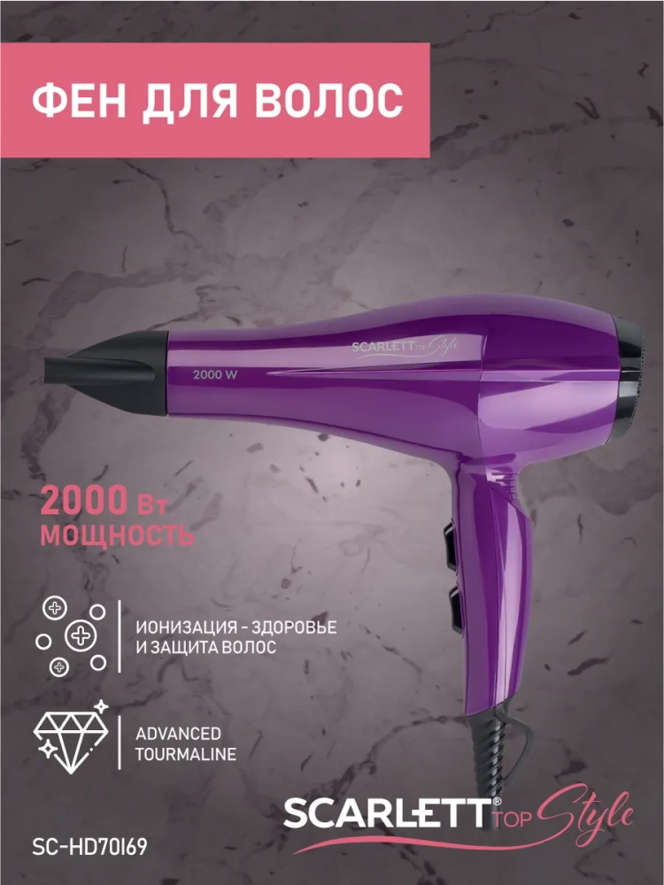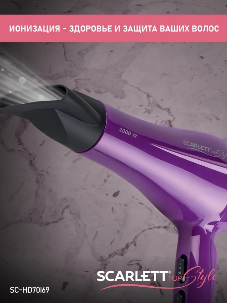 Фен для волос профессиональный с насадкой 2000Вт SC-HD70I69