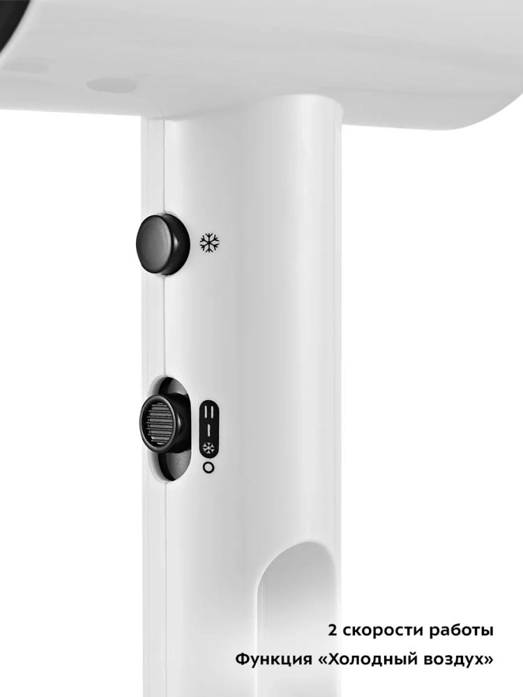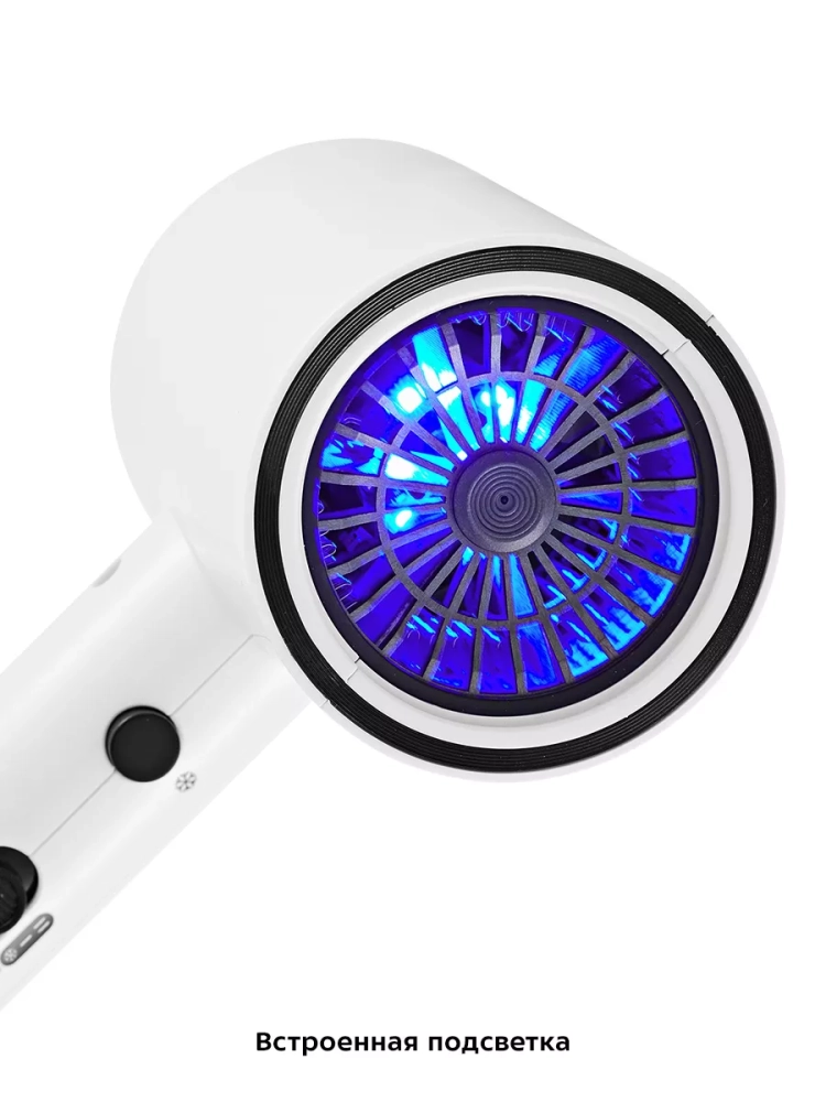 В сопло фена встроена подсветка, которая горит непрерывно во время работы. Шнур фена оснащен защитой от перегиба, что увеличивает срок службы прибора. В ручке фена есть отверстие, чтобы его можно было повесить на крючок.