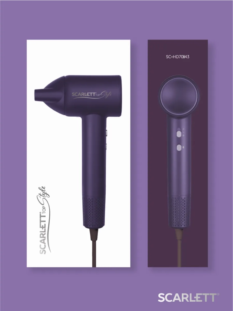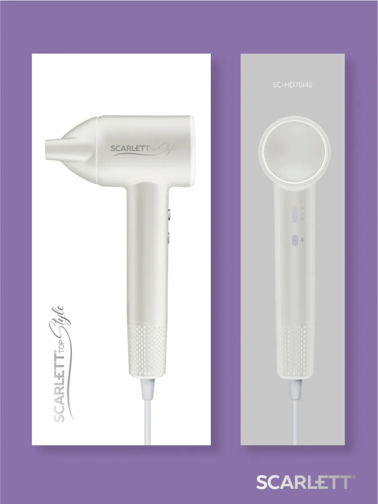 Фен SC-HD70I42 оснащен технологичным и мощным BLDC мотором со скоростью воздушного потока 110000 об/мин. Он позволяет за считанные минуты бережно и равномерно высушить ваши волосы.