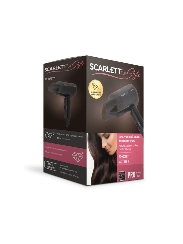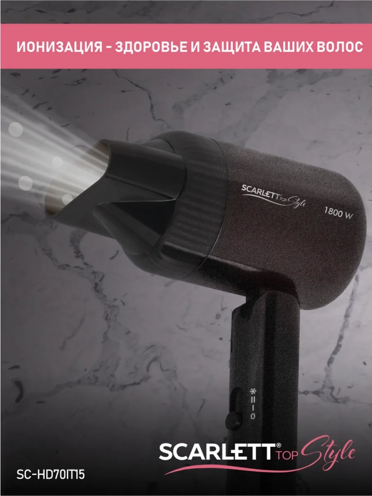 Стильный и компактный фен SC-HD70IT15 станет вашим идеальным попутчиком в любом путешествии.