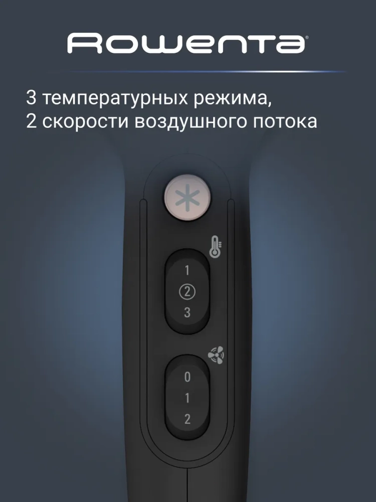 Стайлер с мощностью 2100 Вт в сочетание с технологией Effiwatts гарантирует быструю сушку с минимальным энергопотреблением. Также женский фен имеет 3 режима температуры и 2 настройки скорости, что позволяет настроить его под любой тип волос. Настройка Thermo Control защищает пряди от перегрева, сохраняя их естественную красоту, а подача холодного воздуха фиксирует прическу на длительное время.