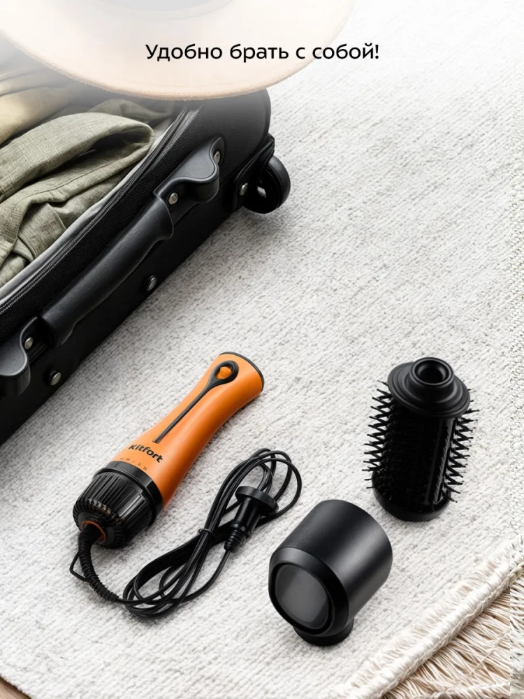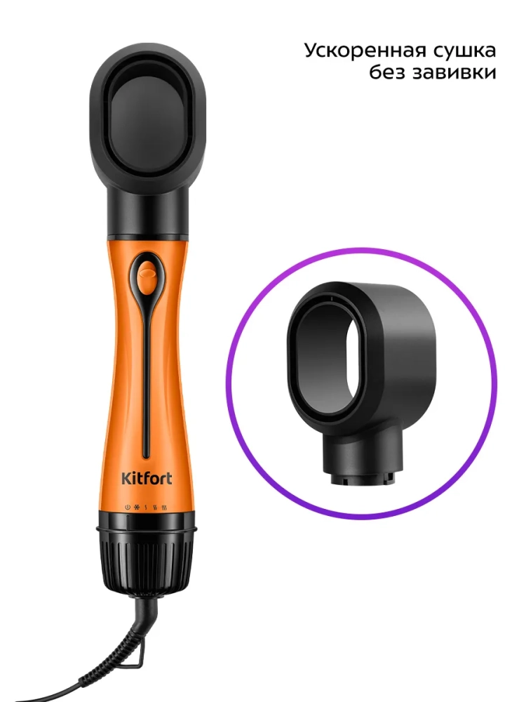 Фен-щетка Kitfort КТ-3287 поможет быстро высушить ваши волосы и сделать укладку. Чтобы использовать устройство как обычны фен, к нему присоединяется насадка-концентратор. Благодаря округлой щетке вы сможете с легкостью уложить челку, создать прикорневой объем и завить кончики волос. На корпус щетки нанесено керамическое покрытие, которое бережно выравнивает структуру волос, делая их гладкими и блестящими, а также снимает статическое электричество.