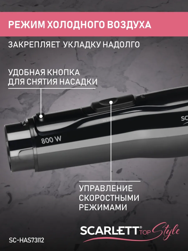 Фен-щетка SC-HAS73I12 обеспечивает не только быструю сушку, но и позволяет добиться превосходного результата в укладке волос. Полукруглая съемная насадка прибора позволит придать объём у корней и уложить непослушные волосы. Данная модель имеет 2 режима мощности потока воздуха, а также имеет функцию «холодный воздух» для фиксации прически. В приборе есть светодиодный индикатор работы, по которому можно определить текущее состояние. Для комфортного использования фен-щетка имеет вращающийся на 360° шнур, который исключает возможность его дальнейшего запутывания. А для безопасности данная модель оснащена функцией автоматического отключения при перегреве.