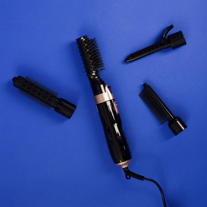 Фен-щётка Luazon LFS-02, 1400 Вт, 2 скорости, 4 насадки, чёрная