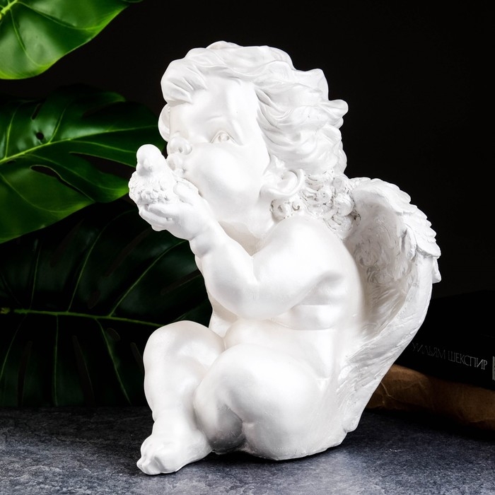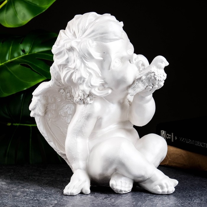 Фигура "Ангел с птичкой" перламутр, 30х21х21см