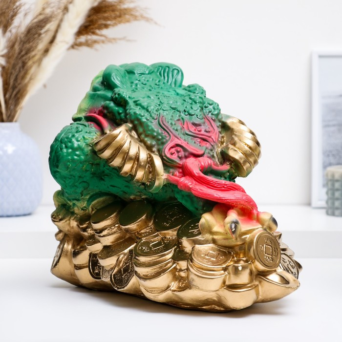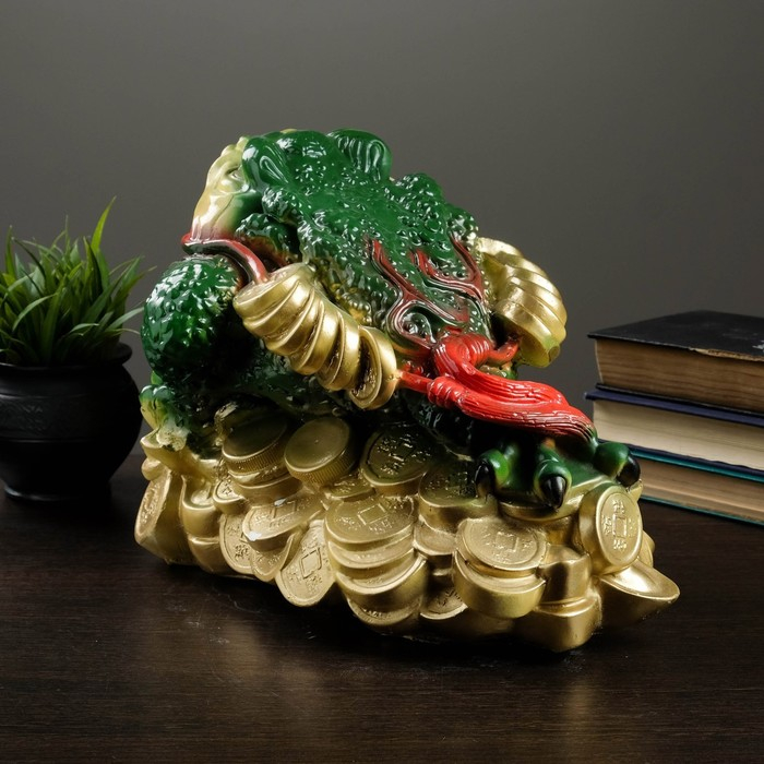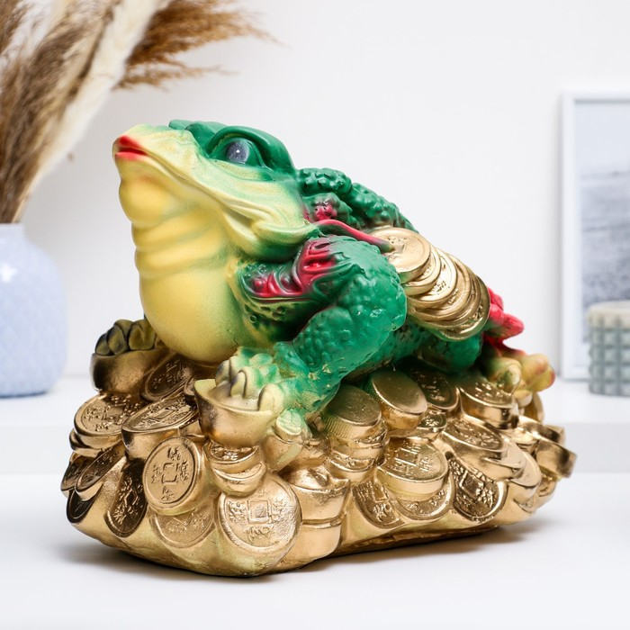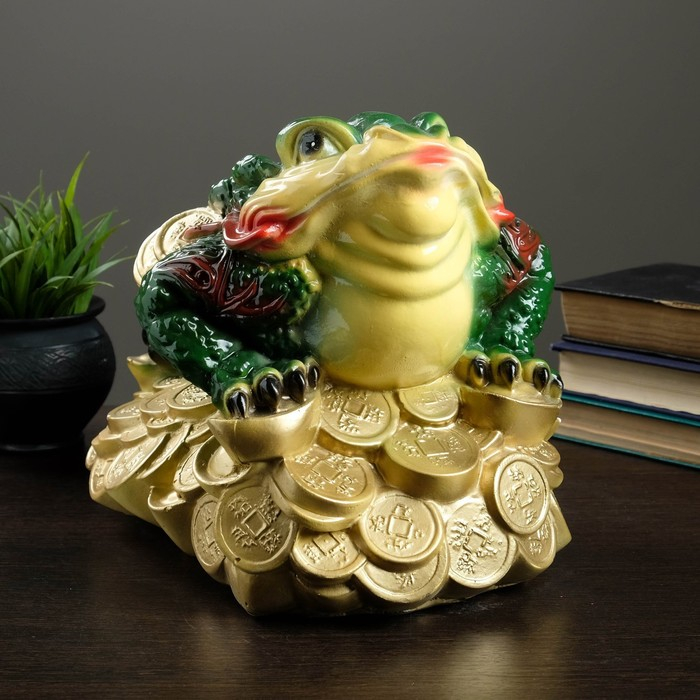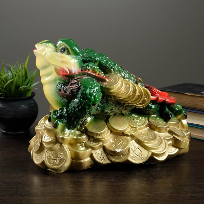 Фигура "Лягушка на монетах" цветная большая 34х25см