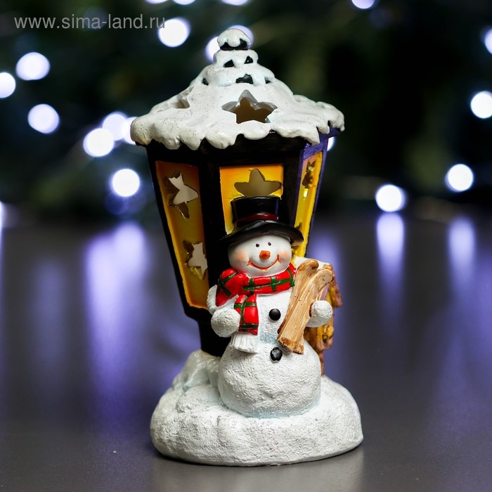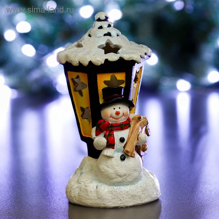 Фигура с подсветкой "Снеговик и фонарь" 10х10х18см