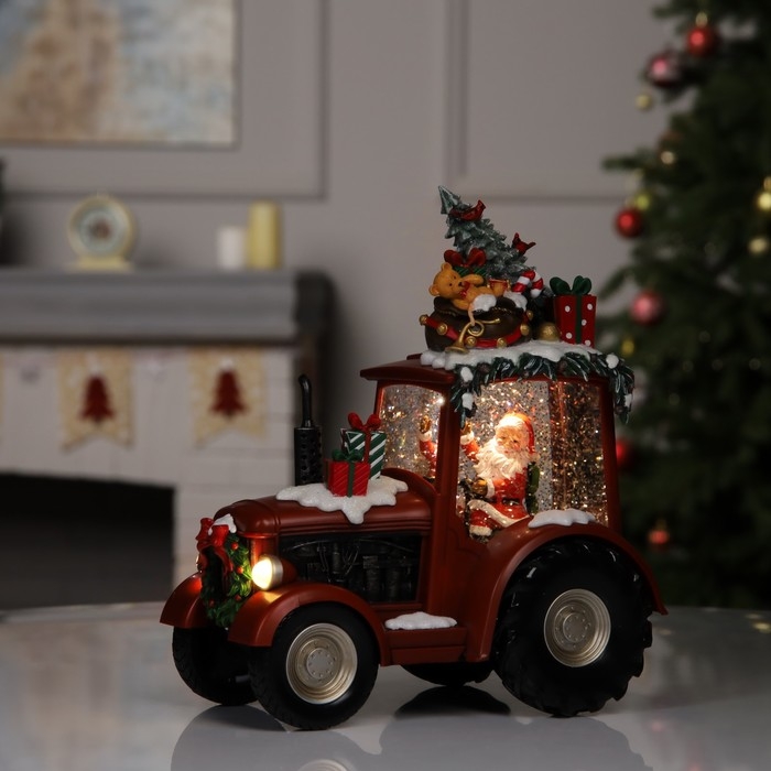 Фигура светодиодная «Праздничный трактор», 25х13х21 см, музыка, батарейки ААх3 (не в комплекте), USB, свечение тёплое белое