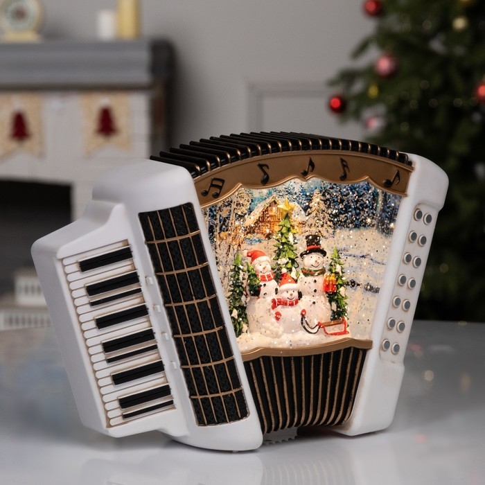 Фигура светодиодная «Семья снеговиков», 18.5х6.3х23 см, музыка, батарейки ААх3 (не в комплекте), USB, свечение тёплое белое