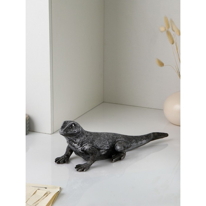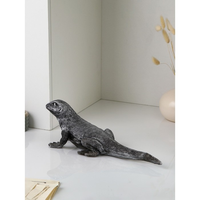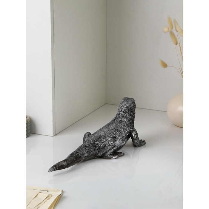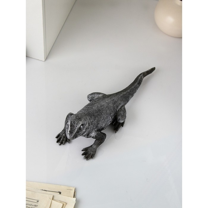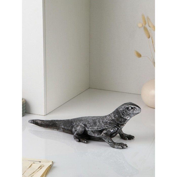Фигура «Варан», полистоун, 14 см, цвет серебро