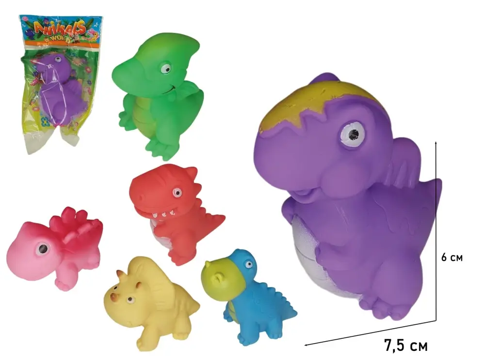 Фигурка динозавра виниловый пищащий. 6 видов. Разного вида и цвета фигурки динозавров. Размер игрушки 7,5 см в ассортименте, без выбора