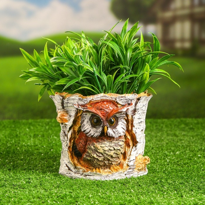 Фигурное кашпо "Филин в березовом дупле" 12х15см