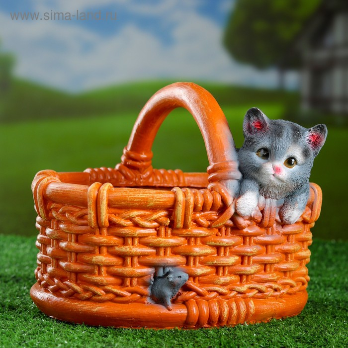 Фигурное кашпо "Котёнок в лукошке" 24х22х19см