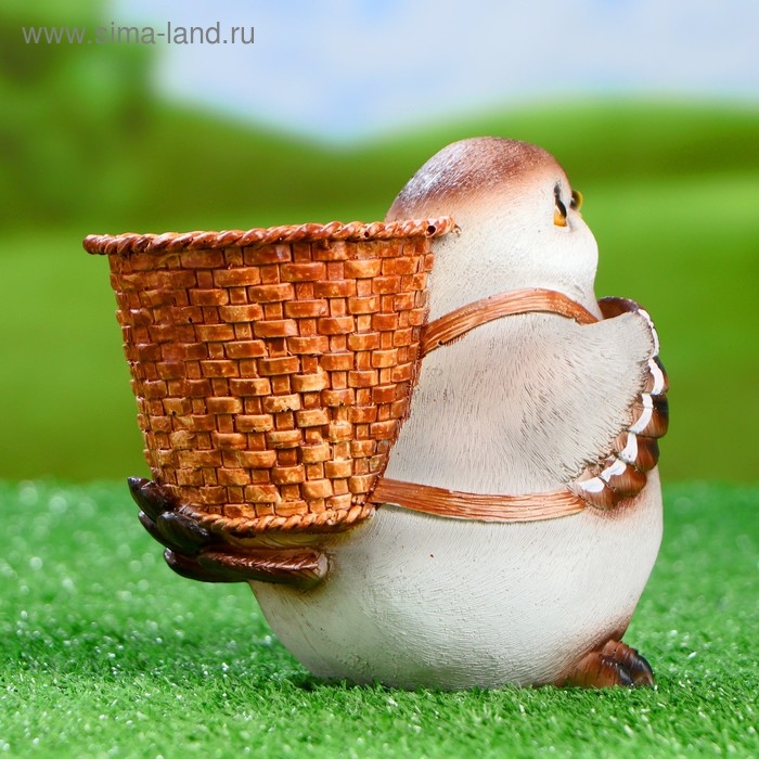 Фигурное кашпо "Воробей с корзинкой на спине" 16х12х15см
