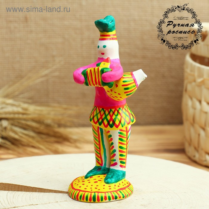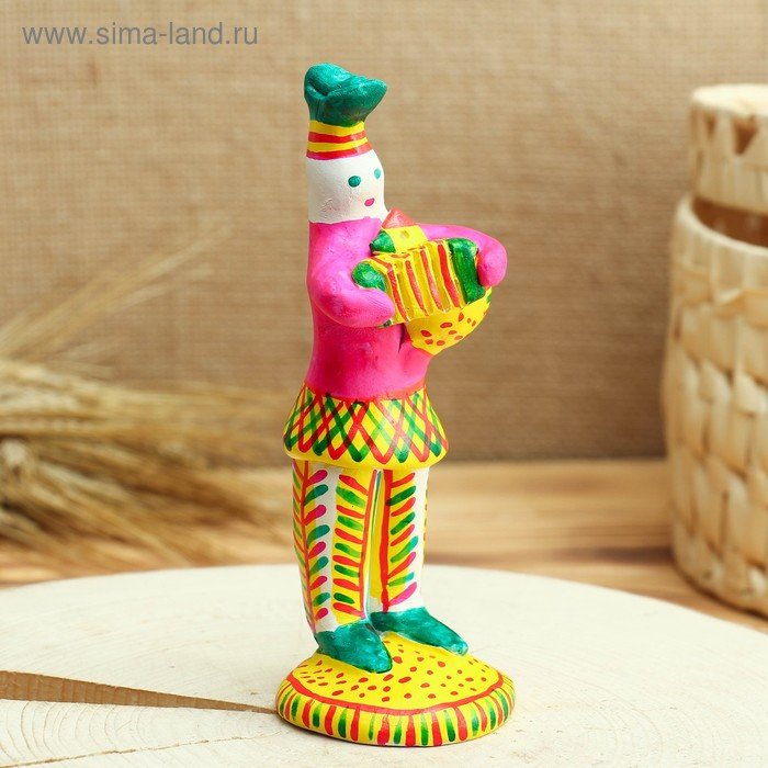 Филимоновская игрушка «Солдат с гармошкой и со свистулькой»