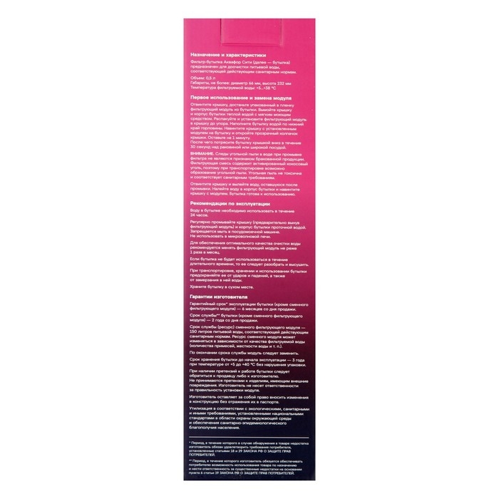 Фильтр-бутылка АКВАФОР Сити со сменным картриджем на 150 л предназначена для доочистки холодной водопроводной воды.