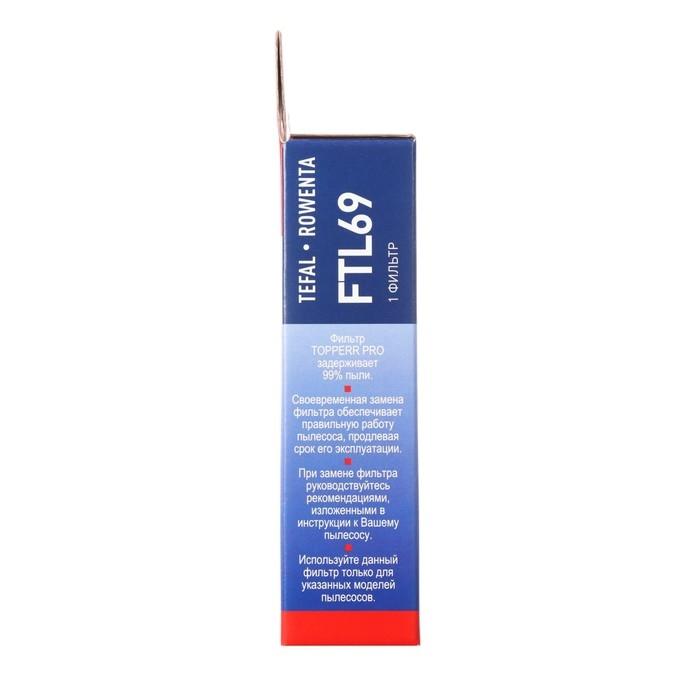 Он предназначен для моделей пылесосов Tefal TW69, TW72 и Rowenta RO69, RO72 и служит для очистки всасываемого воздуха от пыли и мелких частиц.
