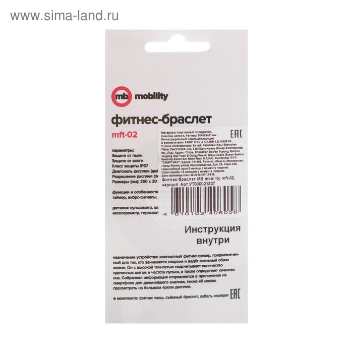 Фитнес-браслет MB mobility mft-02, 0.96", IPX6, пульсометр, SpO2, 45 мАч, черный