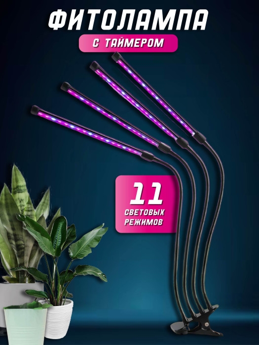 Фито лампа с таймером 4 штуки