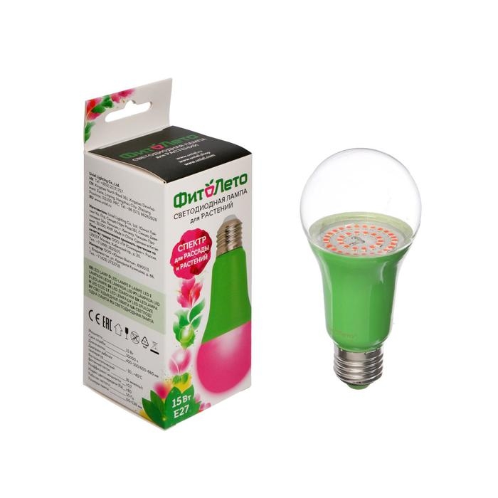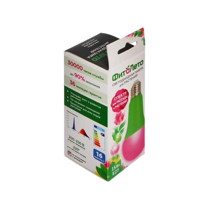 Фитолампа светодиодная Luazon, А60, E27, 15 Вт, IP44, 220 В, 270°, мультиспектральная