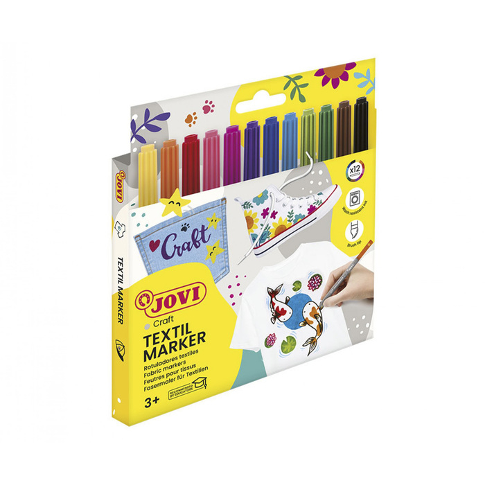 Фломастеры для ткани 12 цветов, JOVI, европодвес
