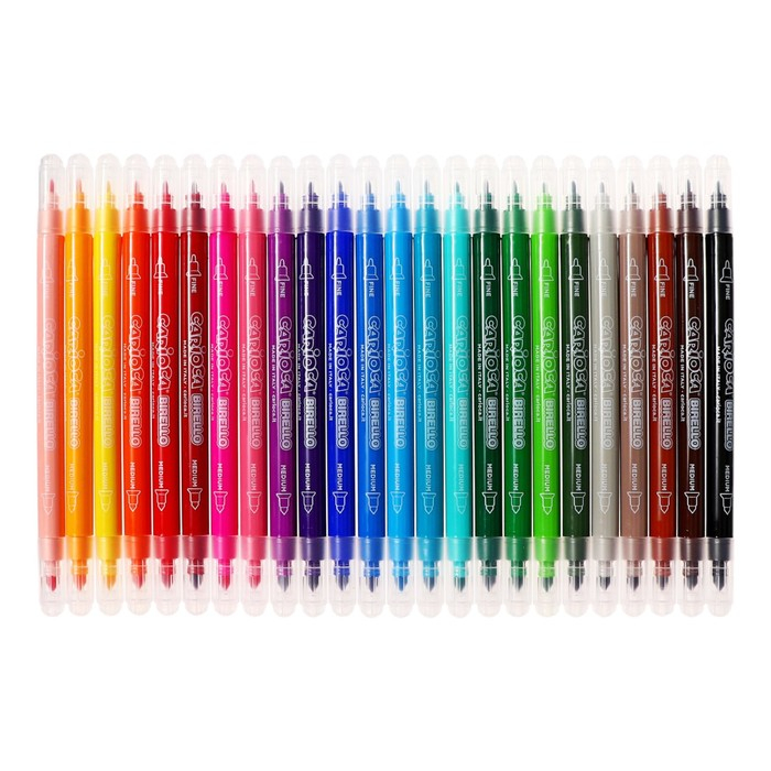 Фломастеры двусторонние 24 цвета, Carioca "Birello", 2.6 / 4.7 мм, смываемые, картонный конверт