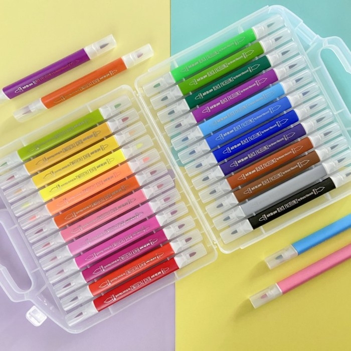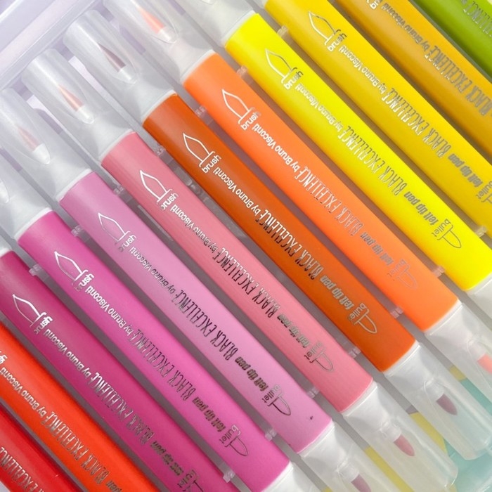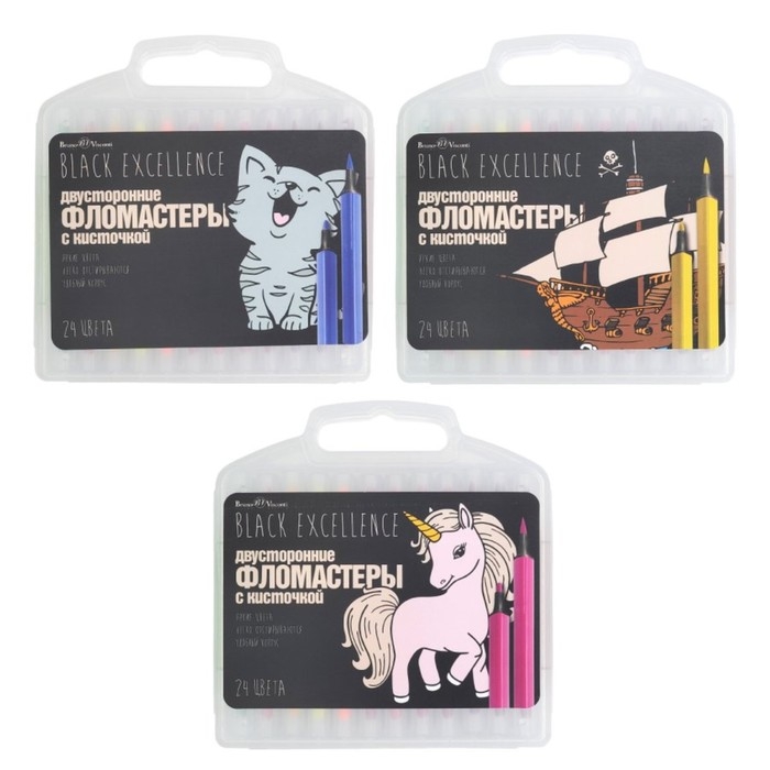 Фломастеры-кисточки 24 цвета BLACK EXCELLENCE, в пластиковом пенале, МИКС