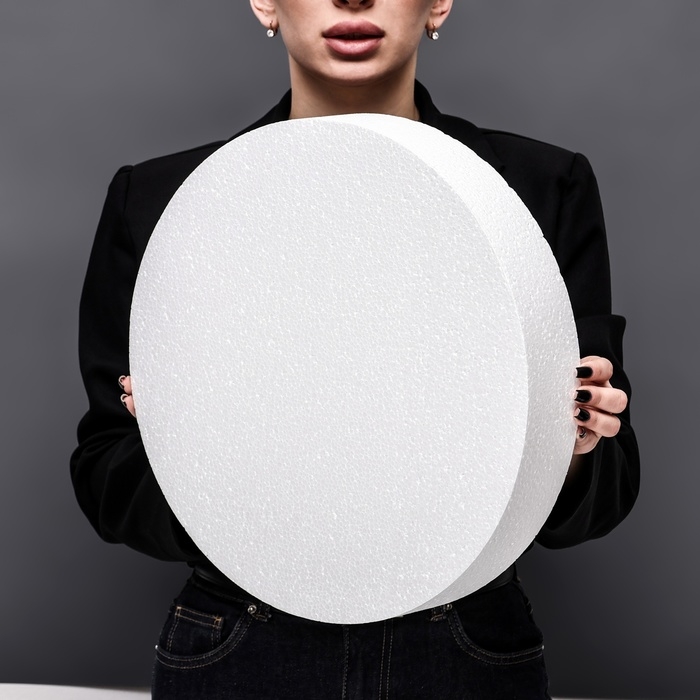 Диск из пенопласта используется флористами в качестве основы для создании композиций из искусственных цветов, сухоцветов, тортов из конфет, букетов.Удобный и недорогой пенопласт выполняет удерживающую функцию, прекрасно декорируется акриловыми красками и при необходимости склеивается термоклеем. Используя разные диаметры легко собрать многоярусную композицию.