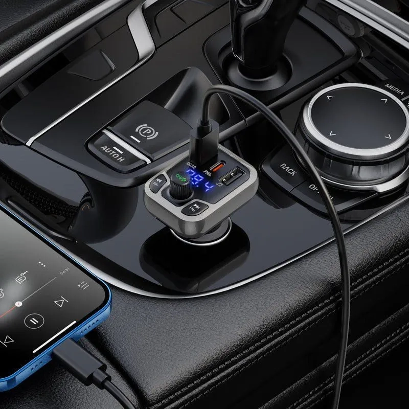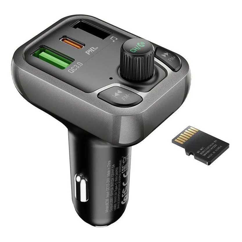 BOROFONE BC38 Flash Energy, автомобильное зарядное устройство с FM передатчиком, USB QC3.0 18W + USB-C PD 20W, USB 5V / 1.5A выход, поддержка BT, USB, TF режимов воспроизведения