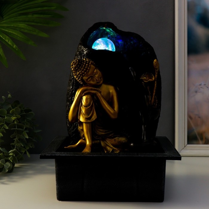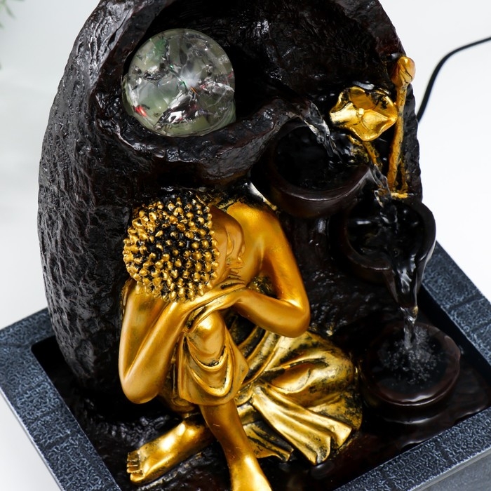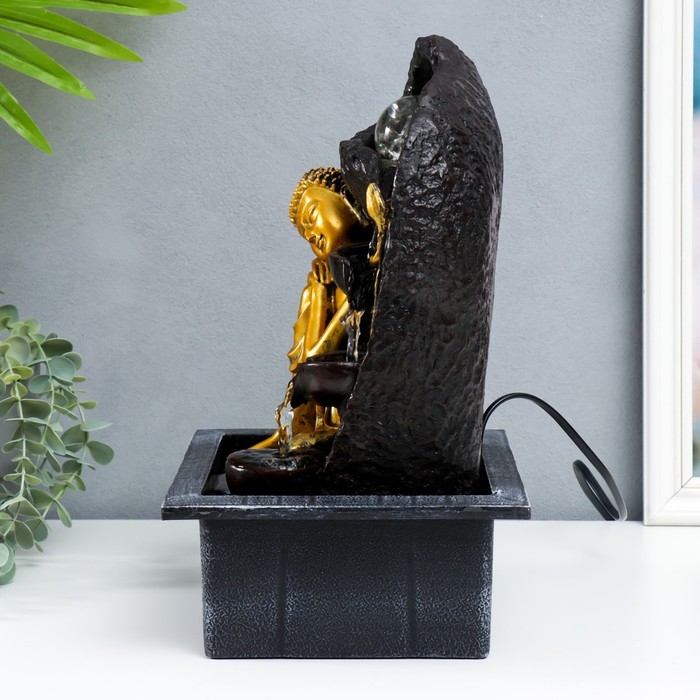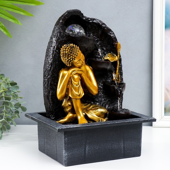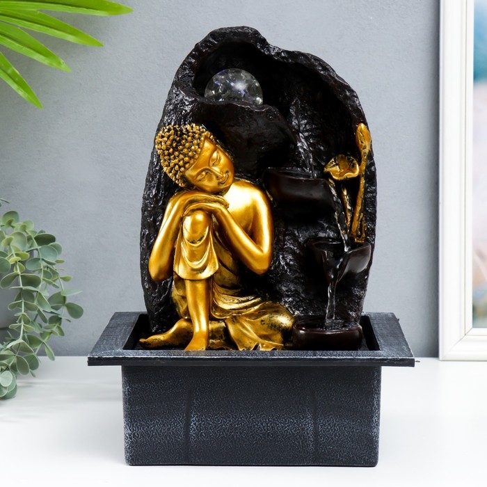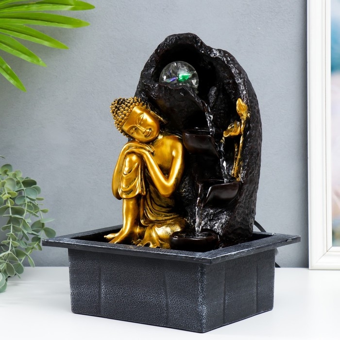 Фонтан настольный от сети "Будда у скалы с фонтаном" золото 35х25х20 см